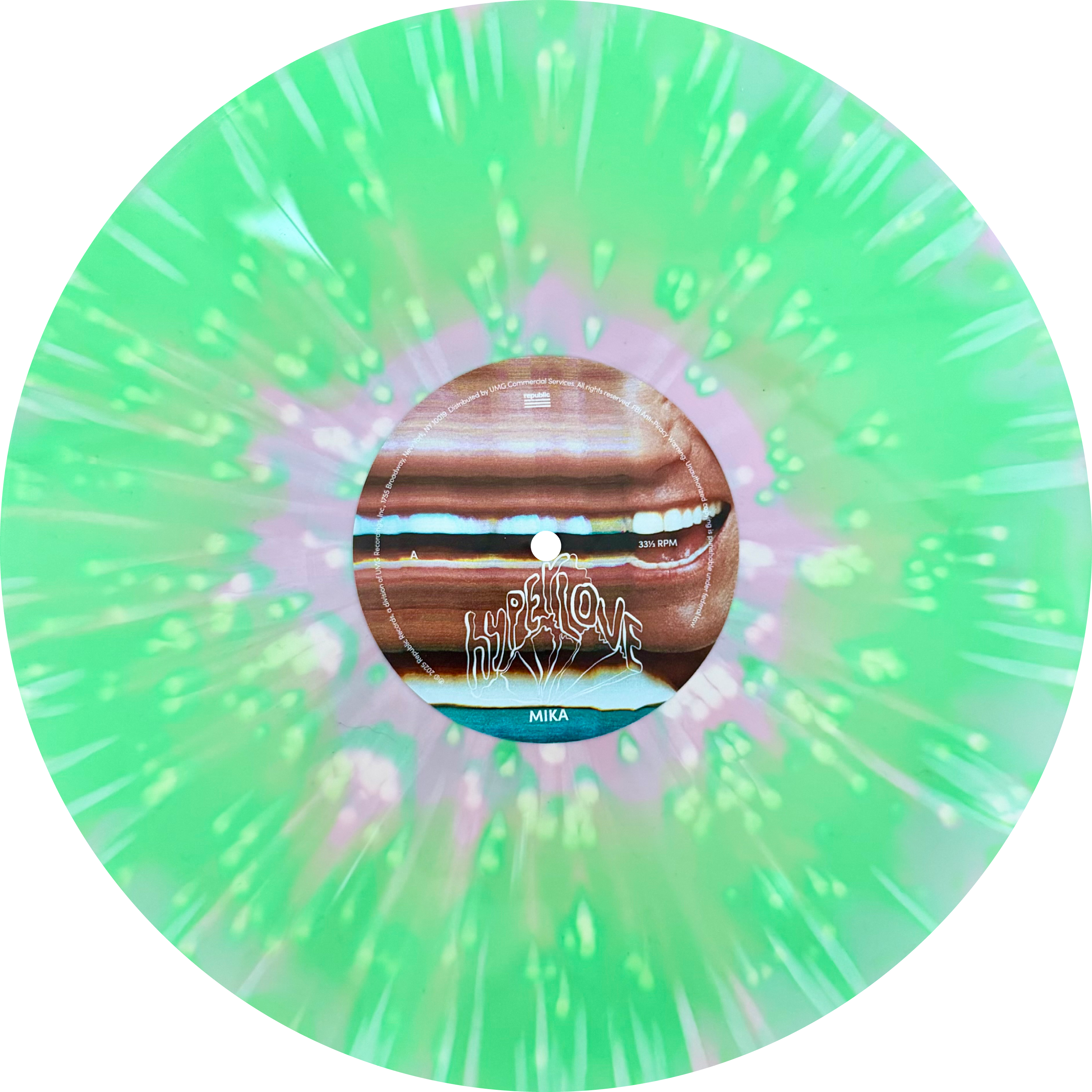 Multi-platinum, Brit Award-winning, and Grammy-nominated global pop visionary Mika ushers in a bold new era with Hyperlove, pressed exclusively to baby pink and spring green LP with cream splatter, limited to 500 and hand-numbered. The vibrant and emotionally charged seventh studio album from Mika embodies his signature fusion of theatricality, honesty, and irresistible melody. The album captures the sound of an artist forever redefining and transcending pop on his own radiant terms. It is as bold and heartfelt as it is timeless, a celebration of emotion, identity, and imagination in their most vivid forms
