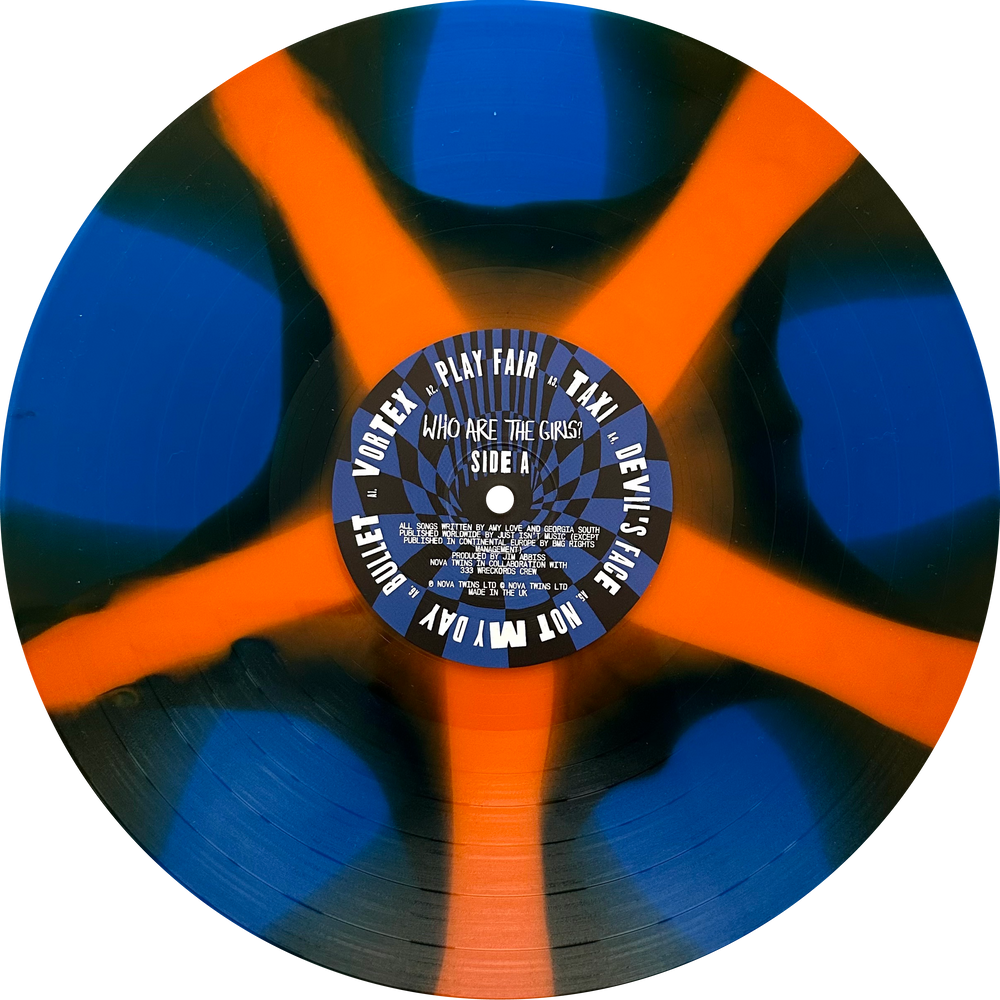 Celebrating the 1st Anniversary of Nova Twins’ critically acclaimed, breakthrough debut LP ‘Who Are The Girls?’ with a deluxe reissue via Blood Records. Pressed to propeller effect orange and blue vinyl, this exclusive variant sees two new remixes (from Fever 333 and Dream Wife) added to the album, now in a gatefold sleeve signed by Nova Twins, plus CD insert and a digital download card. This deluxe version comes hand-numbered, on a first-come-first-served basis.